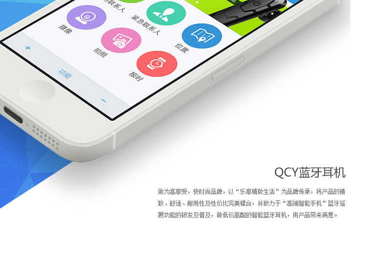 企业APP案例:QCY蓝牙耳机,是一款硬件结合软件的智能产品,通过接口方式控制您购买的QCY蓝牙耳机,可以用手机进行摄影、拍照、报时、定位。